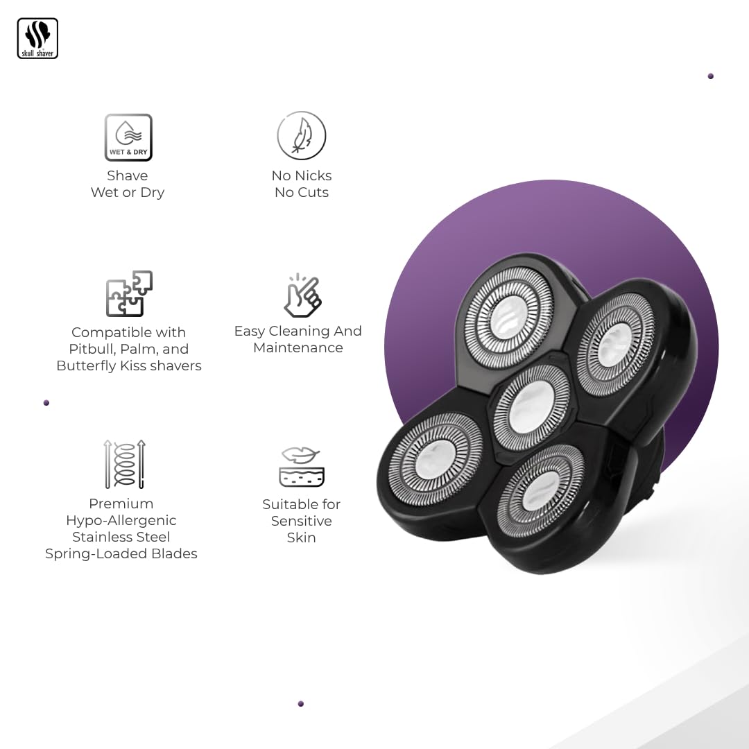 Skull Shaver Carver 5 Head Replacement Blade - Efficient Shave for Coarse Hair - Flexing Rotary Blades - Easy Maintenance - Fits Pitbull Shavers