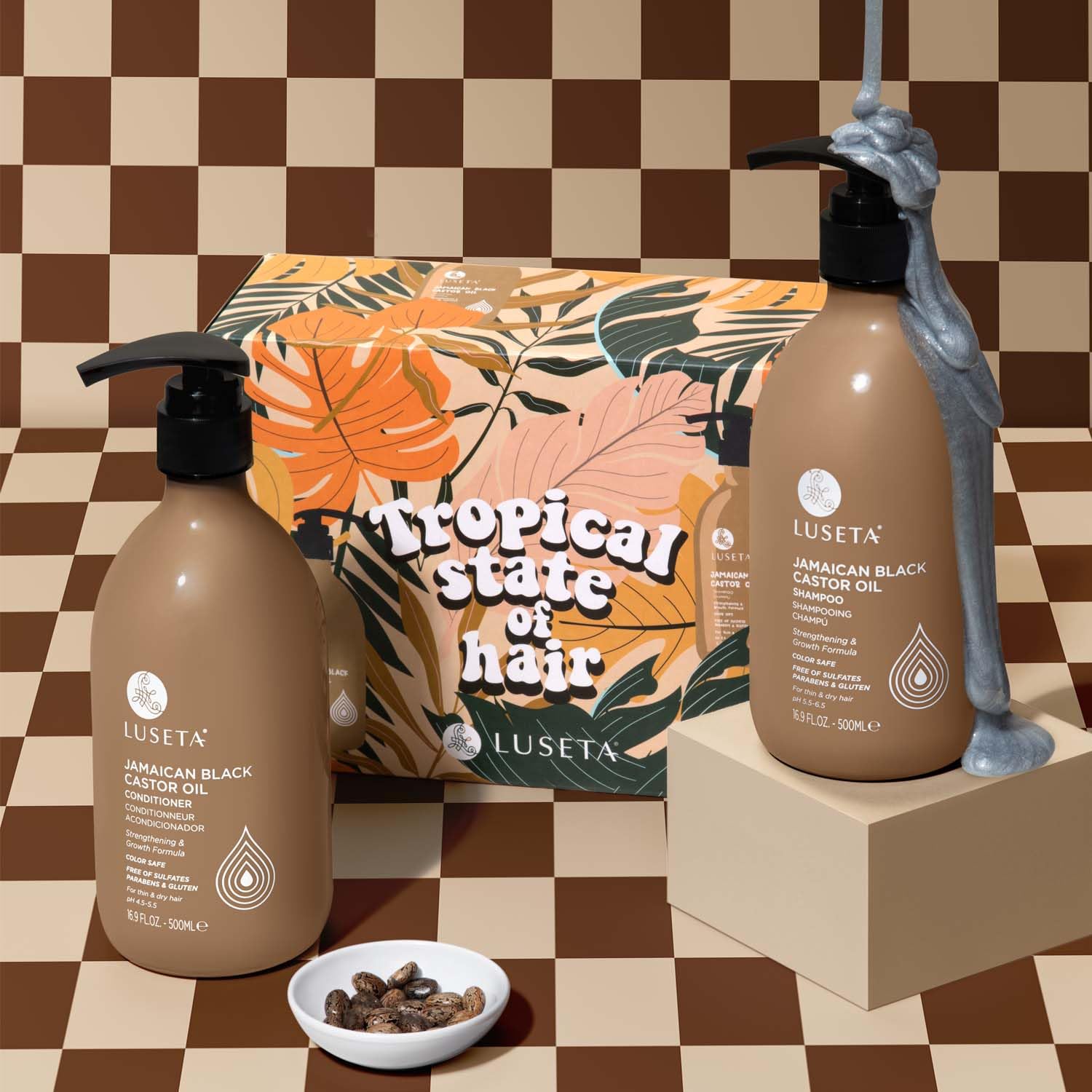 Luseta Castor Oil Shampoo and Conditioner Set Strengthen and Cleanse Thin Hair Restore Damaged Hair Sulfate Free for Men & Women 16.9oz*2
