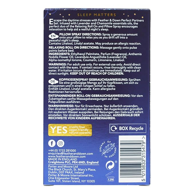 - Mindful Self-Care: Enhance your nightly routine with Feather and Down's Lavender and Chamomile Perfect Partners Gift Set, a luxurious combination for a restful and rejuvenating experience