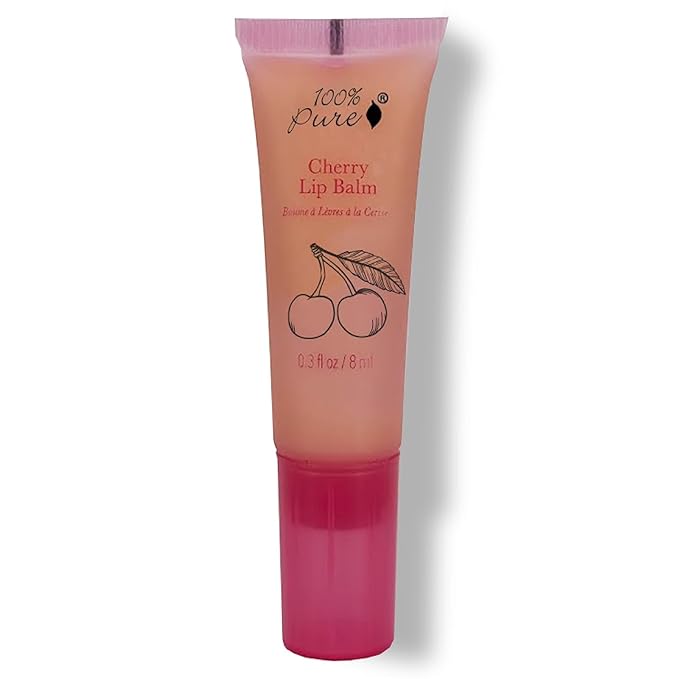 100% PURE Organic Cherry Lip Balm, Moisturizing, Soothing for Dry, Chapped Lips, Made w/Coconut Oil, Vitamin E, Natural Lip Balm - 0.4 oz