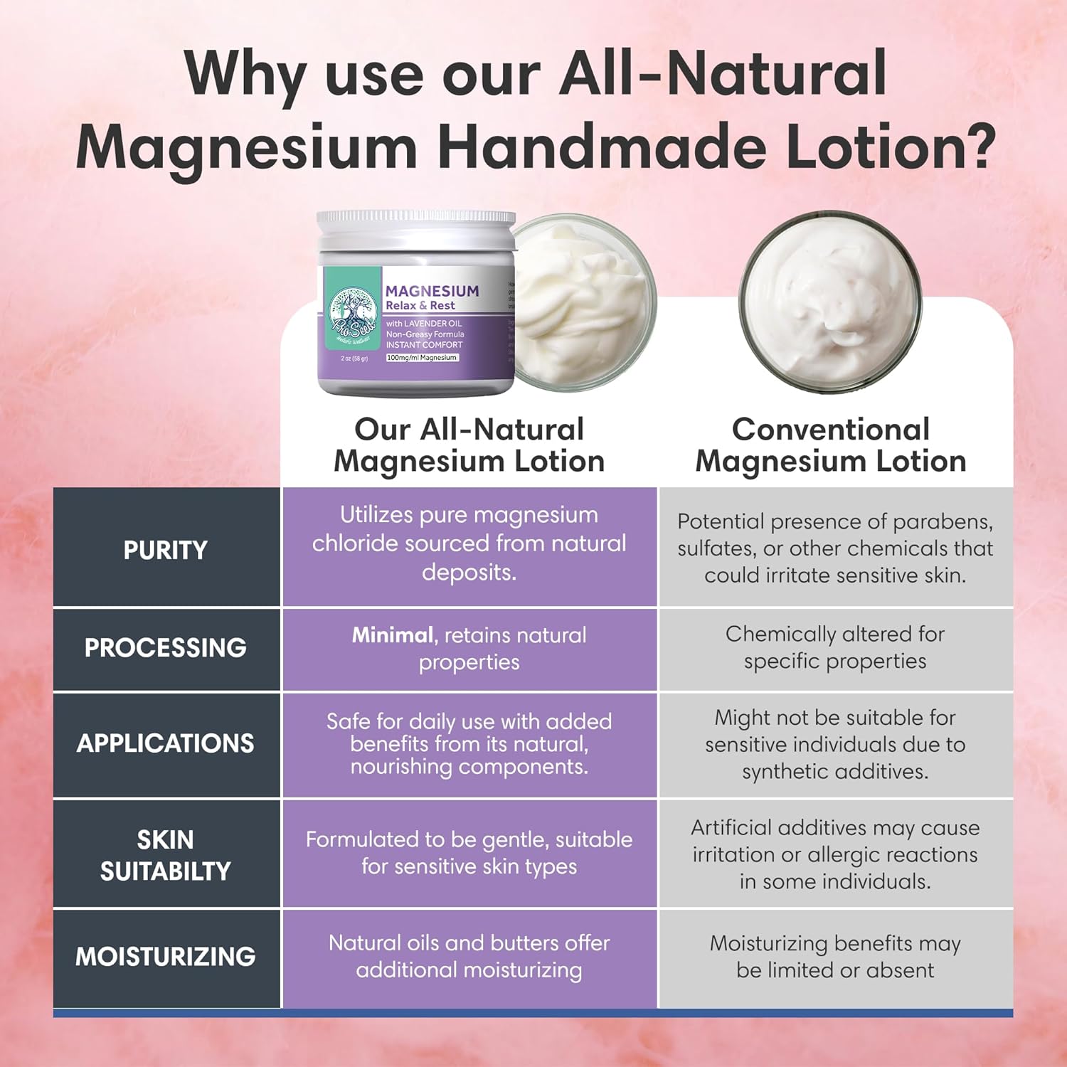 Handmade Organic Lavender Magnesium Lotion - Body Rub for Bedtime Care - Essential for Kids, Pregnant Women, Toddlers & Moms - Moisturizes & Hydrates Legs, Feet & Body - 2oz Glass Jar