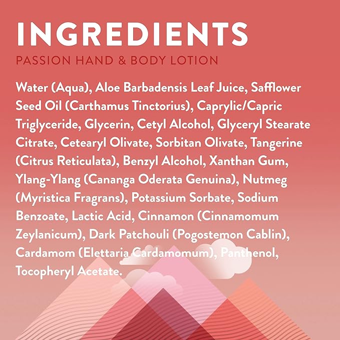 - PURE INGREDIENTS: This paraben-free lotion contains moisture-rich aloe leaf juice, safflower seed oil, and a blend of cinnamon, patchouli, tangerine, nutmeg, ylang-ylang and cardamom.