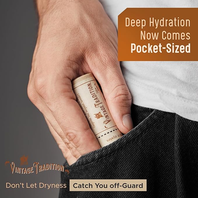 - Max Moisture – Chapped lips are a pain in the mouth. Kiss dry lips goodbye with your Vintage Tradition’s lip salve tube featuring only nourishing tallow balm and olive oil, both of which impart a delicate, natural flavor.