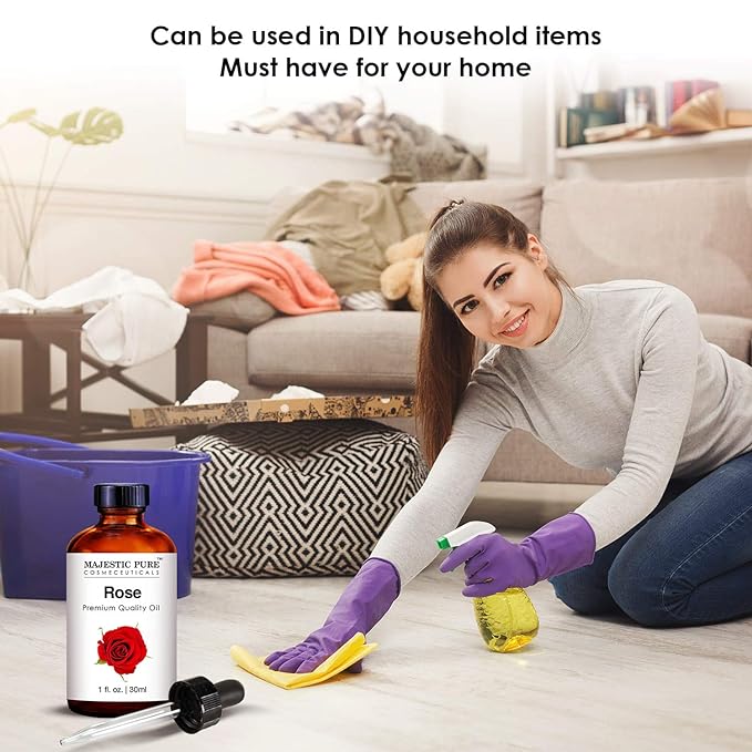 MAJESTIC PURE Rose Essential Oil | 100% Pure and Natural Rose Oil | Premium Grade Essential Oils for Hair Care, Home Diffusers, Skin, Aromatherapy, Massage and Humidifiers | 1 Fl Oz