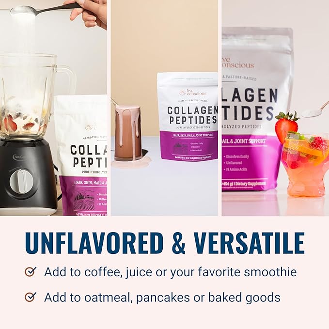 - Natural Taste — While some customers take no notice, since everyone's palate is different, the Live Conscious Collagen Peptides naturally-sourced formula may have a mild taste that you would most prefer adding to your favorite smoothie.