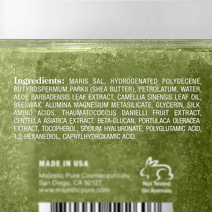 - Majestic Pure Matcha Green Tea Body and Face Scrub ; all natural; vegan friendly; made in USA.