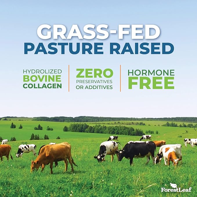 - Pasture Raised Grass Fed Collagen Powder - Forest Leaf advanced collagen is 100% grassfed collagen from naturally grazing, pasture raised livestock and is unflavored with zero artificial additives or flavors including sugar, gluten, dairy, nuts, soy, fish, egg, and hormones.