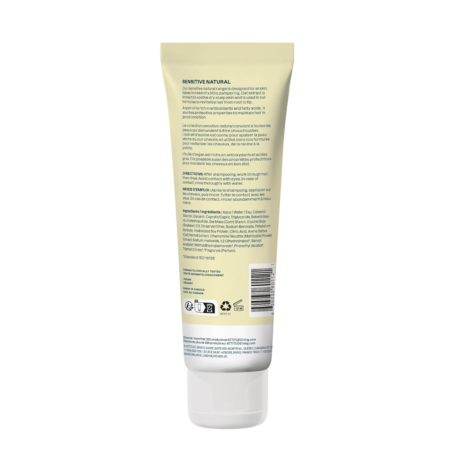 ATTITUDE Hair Conditioner for Sensitive Dry Scalp, Soothing Oat, Protects Color, Naturally Derived Ingredients, Dermatologically Tested, Vegan Detangler, Color Care, 8 Fl Oz