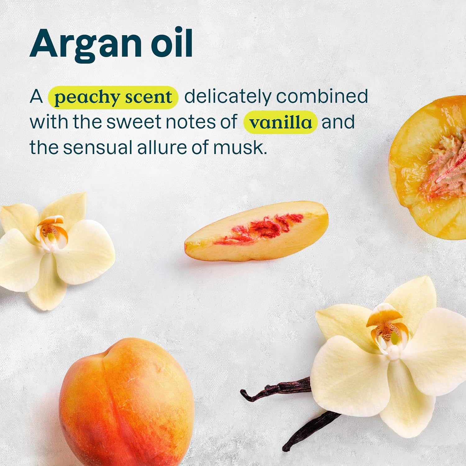 - ARGAN OIL: This conditioner for men and women is infused in a soft and comforting scent where juicy peach blends with sweet vanilla, wrapping hair in creamy warmth.