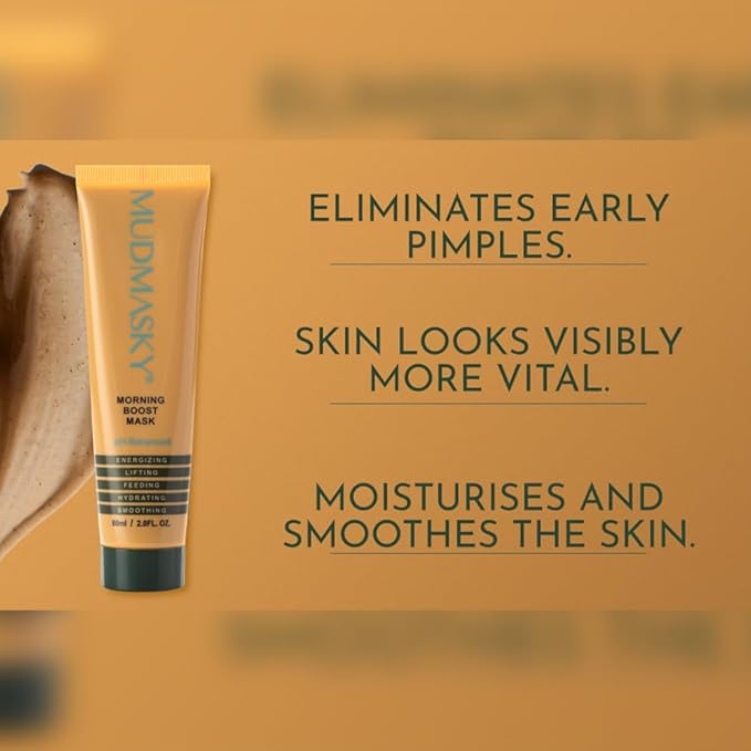 MUDMASKY Morning Boost Mask 60ml – Energizing Clay Face Mask for Beauty & Skin Care, Hydrating & Lifting with Coffee, Moroccan Lava Clay, Indonesian Flowers – Moisturizing & Smoothing