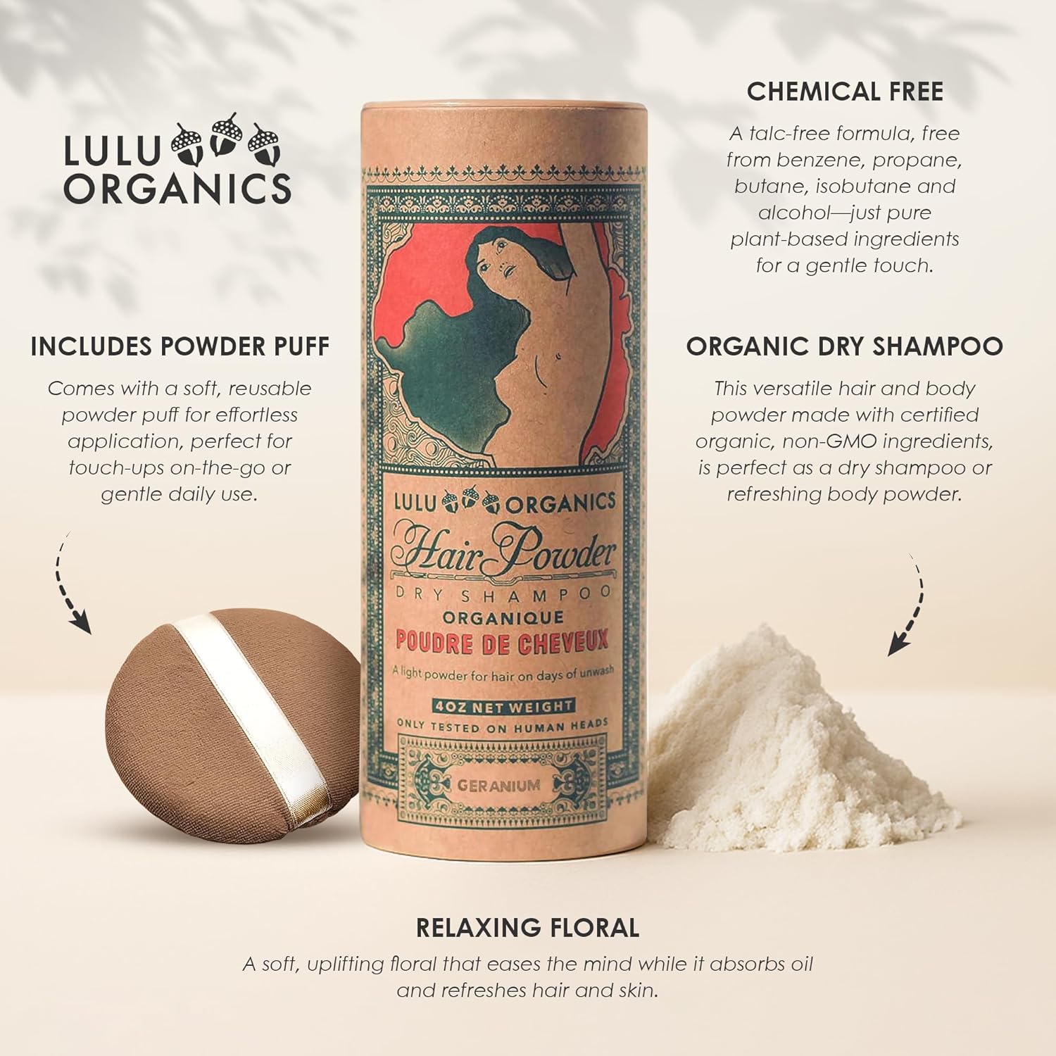 - EFFICIENT FOR YOUR LIFESTYLE: Simply sprinkle this Geranium scented 4 oz powder shampoo on your hair roots for a grease-free, voluminous hair or apply it to your skin for extra freshness. Ideal travel essentials for women and men with a busy routine.