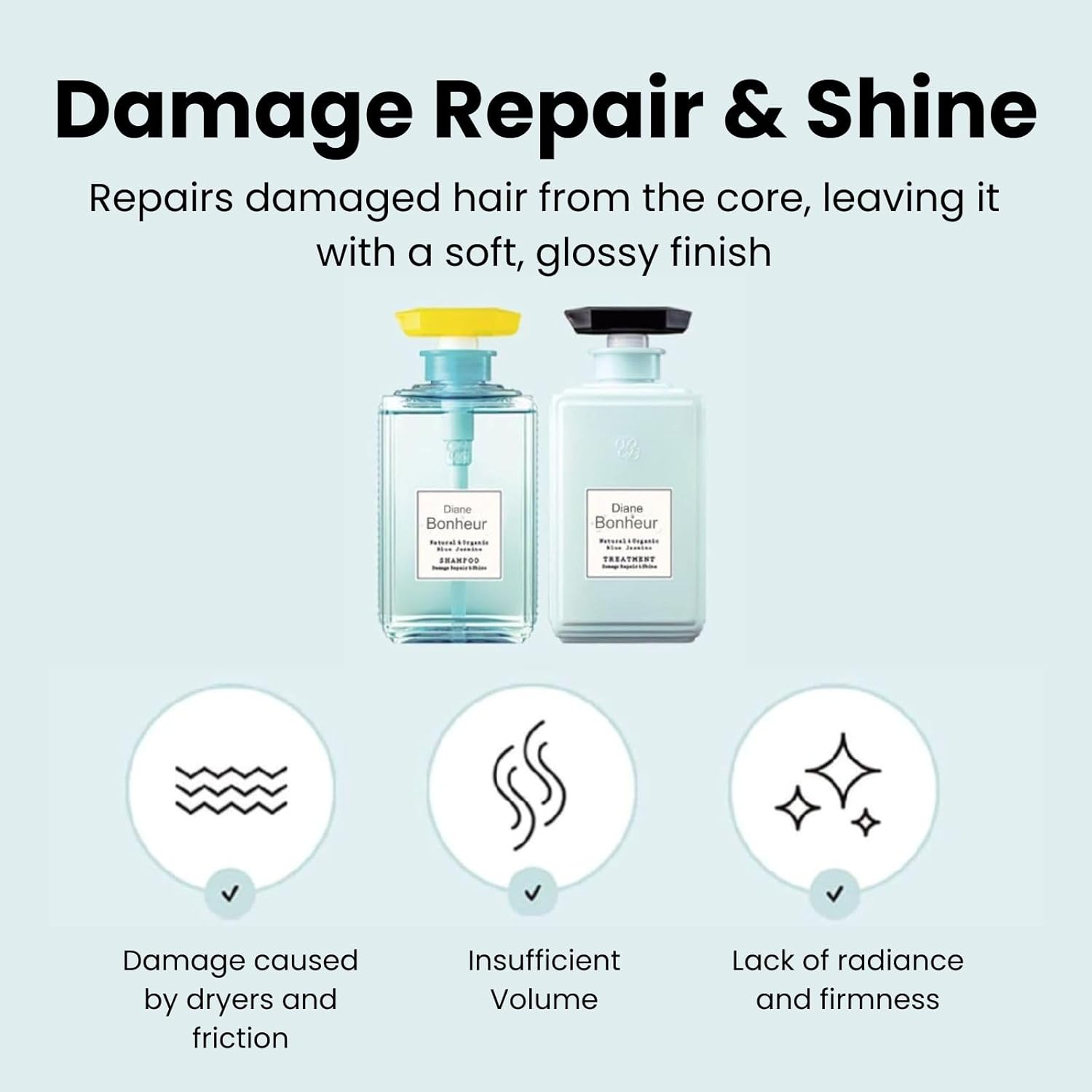 - Damage Repair & Shine repairs damaged hair from the core, leaving it soft and lustrous. Blue jasmine scent.