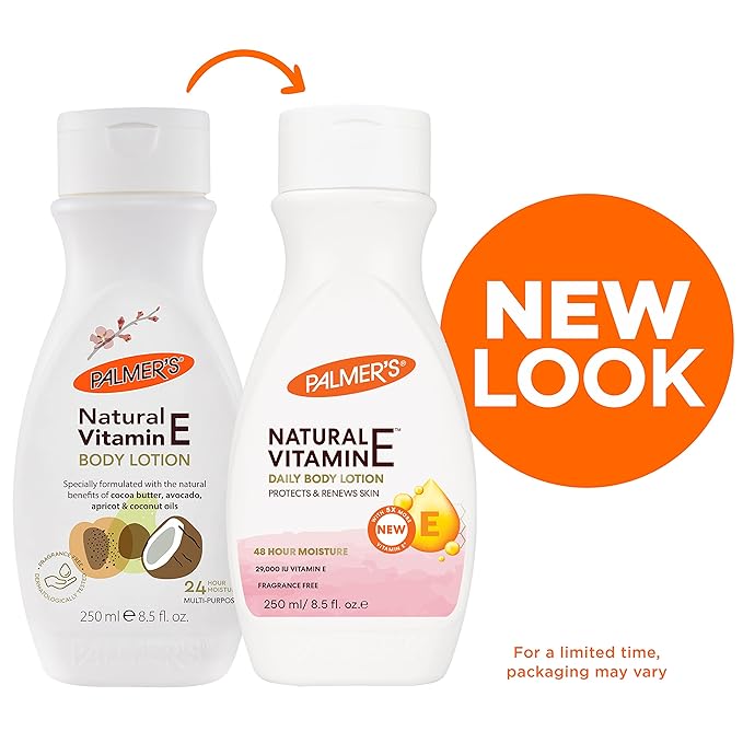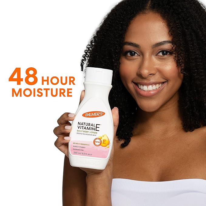 - Hand And Body Lotion: Palmer's Natural Vitamin E Body Lotion delivers daily moisturization to improve the appearance of dry, damaged or cracked skin, uneven skin tone and chafed skin; Hypoallergenic and fragrance free