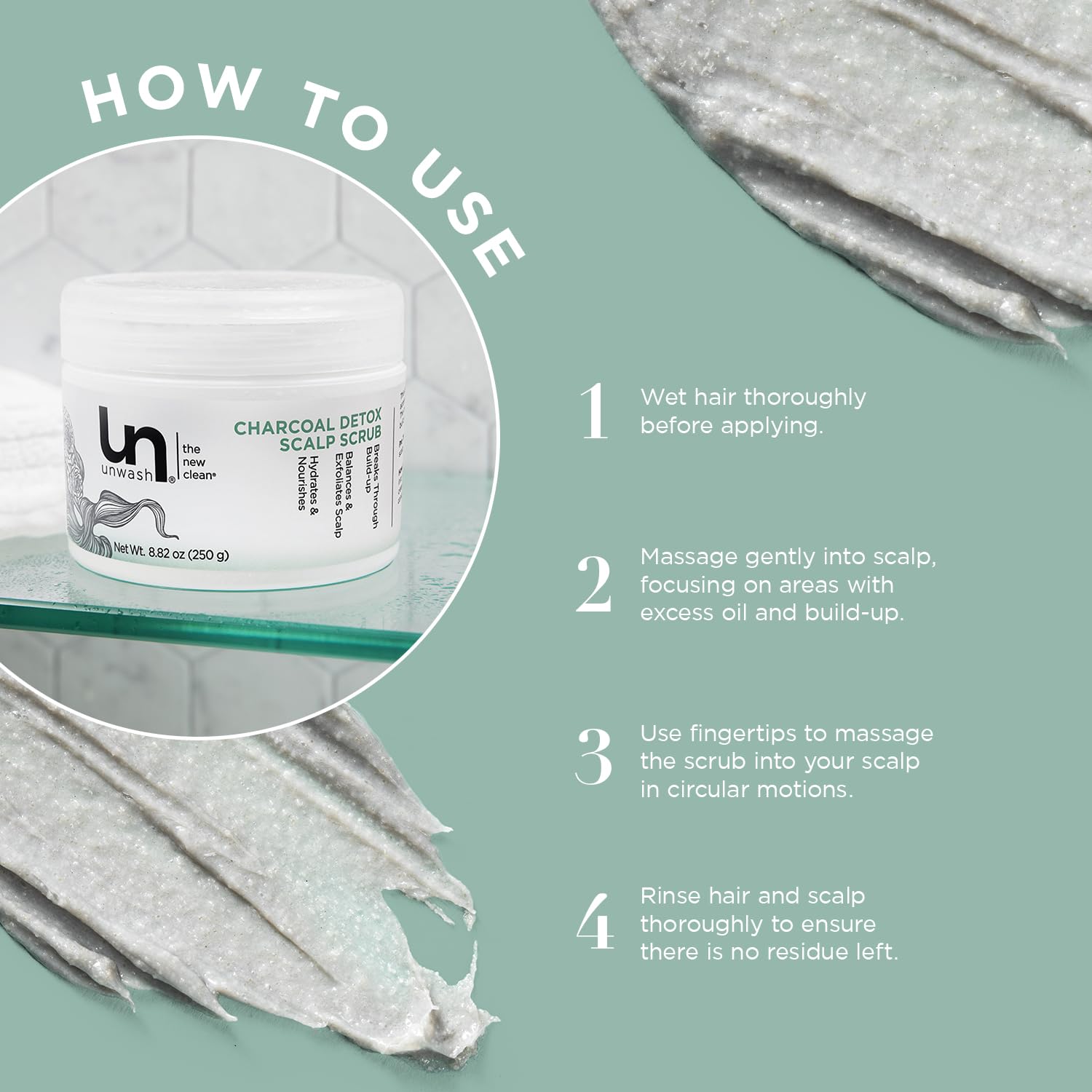 Unwash Charcoal Detox Scalp Scrub - Detoxify, Exfoliate, & Rebalance Hair & Scalp, Removes Build-Up, For Dry, Itchy Scalps Paraben Free, 8.82 oz