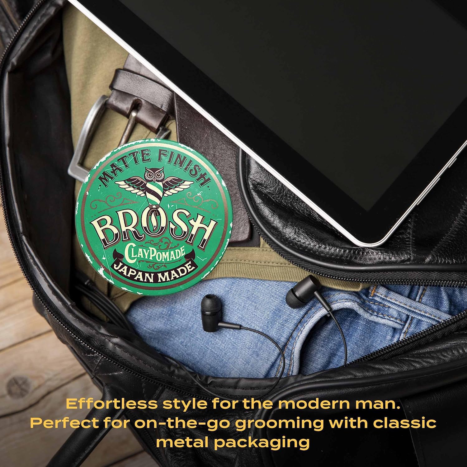 BROSH Matte Finish Clay Pomade with Medium Hold & Natural Finish, Lightweight Water-Based Hair Styling Paste for Men, 4 Oz
