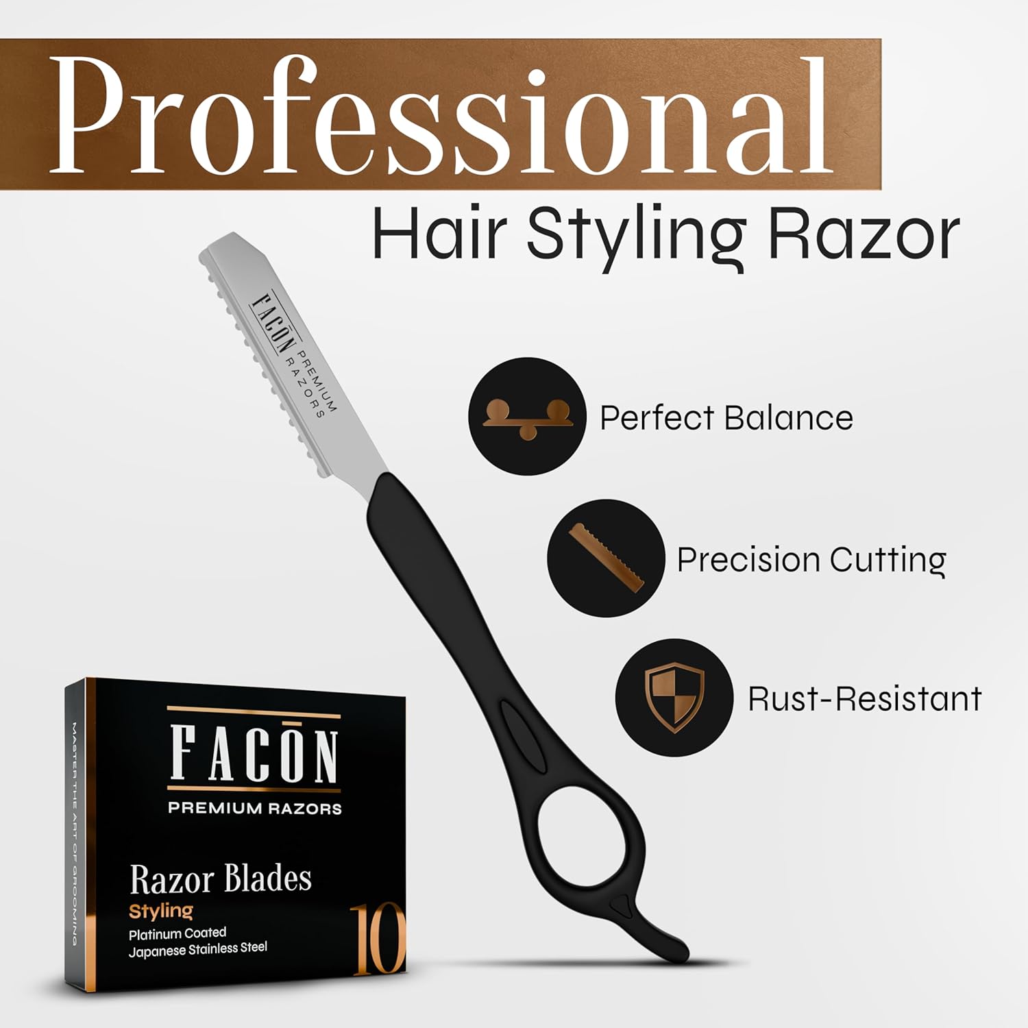 Facón Hair Razors for Cutting Hair - Professional Hair Styling Razor Kit with 11 Replacement Blades, Stainless Steel Hair Cutting Tool for Salon & Home, Premium Hair Thinning Texturizing Faether Razor