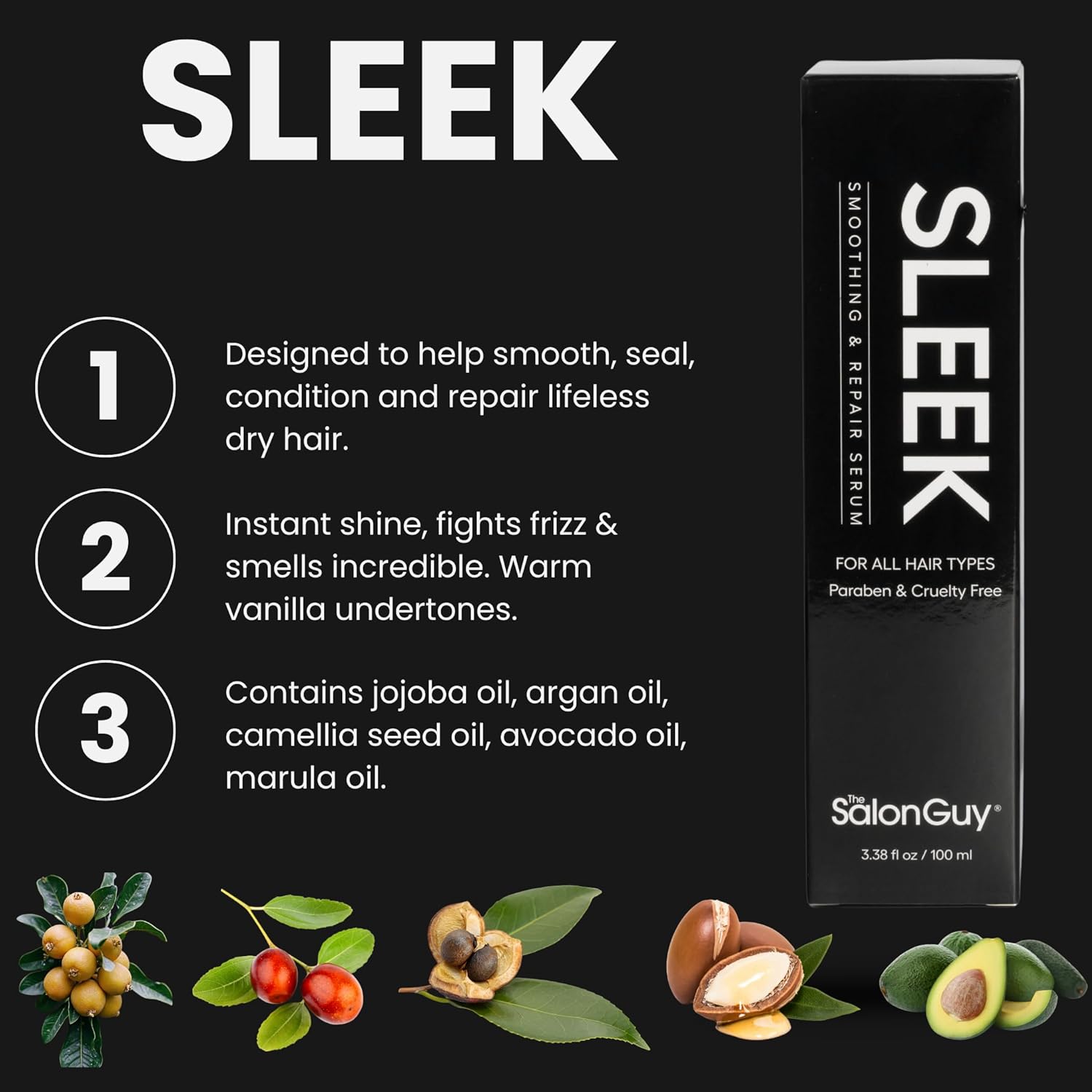 THESALONGUY SLEEK Hair Serum for Frizzy and Damaged Hair - Blend with Jojoba, Argan, Avocado & Marula Oil - UV, Color & Heat Protectant Serum - Nourishes & Repair - Ideal for Men & Women