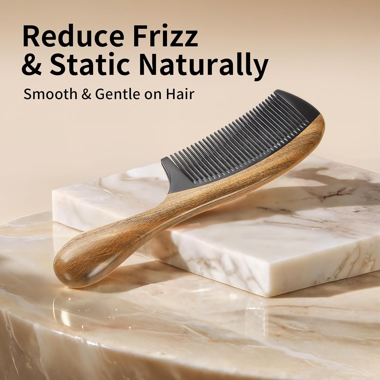 Onedor Handmade Buffalo Horn and Sandalwood Hair Combs - Anti-Static Natural Scent Wooden Detangler (Fine Tooth)