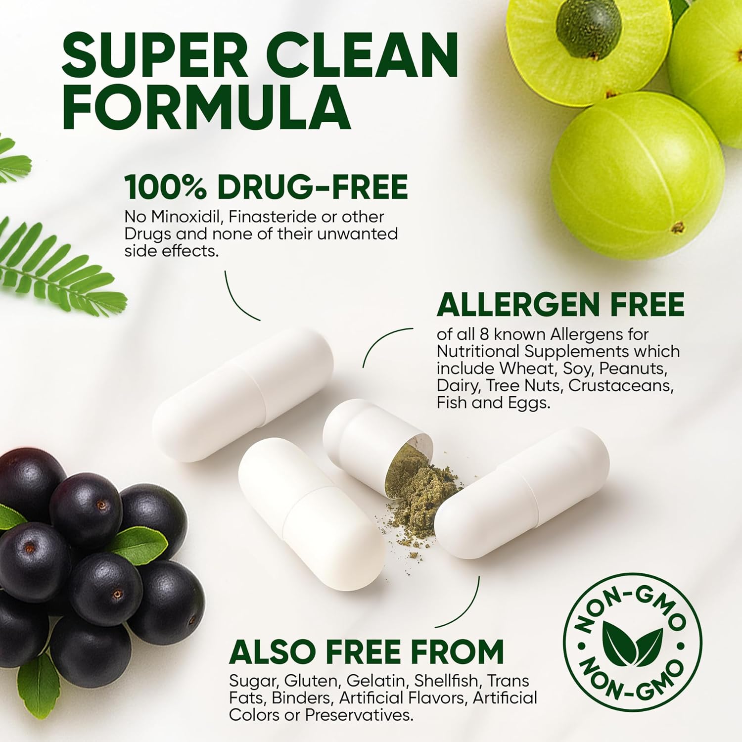 - Natural and 100% Drug Free: A Clean Formula Hair Growth Supplement For Hair Thinning and Hair Loss; With No Minoxidil, No Finasteride, And No Side Effects