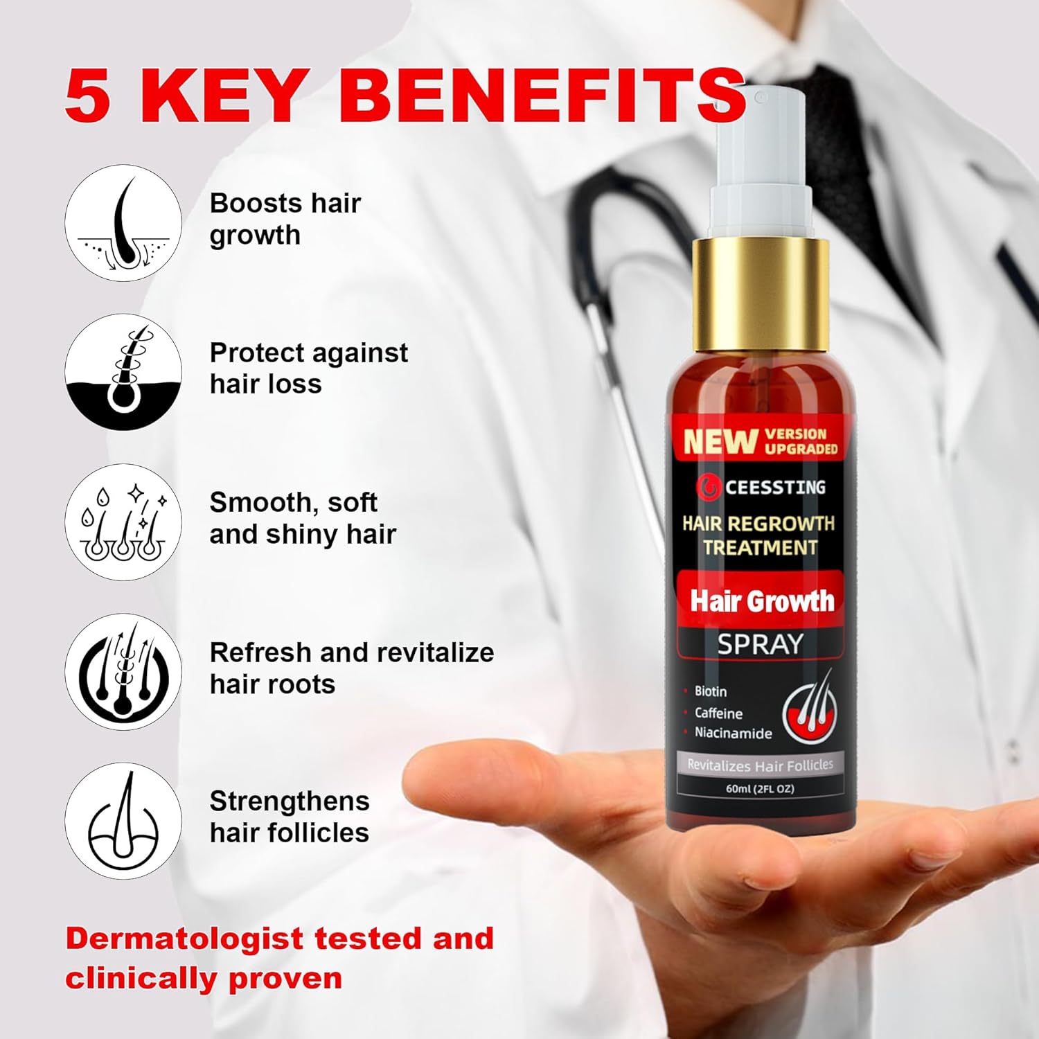 Hair Growth Spray by Ceessting- Biotin, Caffeine and Niacinamide - Anti-Hair Loss for Thinning Hair -Hair Regrowth Treatment for Men and Women- 2 Ounces