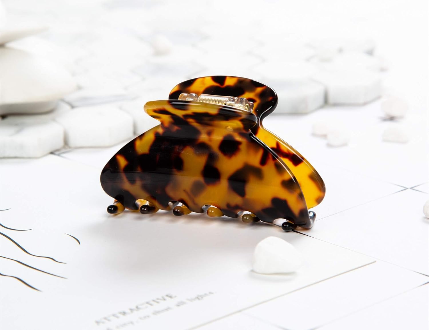 - 【UNIQUE & HANDMADE】: Classic Elegant Tortoise Shell patterns in this hair claw clip can adapt all kinds of occasions. The materials are imported from Italy, designed in France and handmade in China. Each unit is polished by hand. So that there is no exactly the same pattern of the acetate hair ornaments in the world.