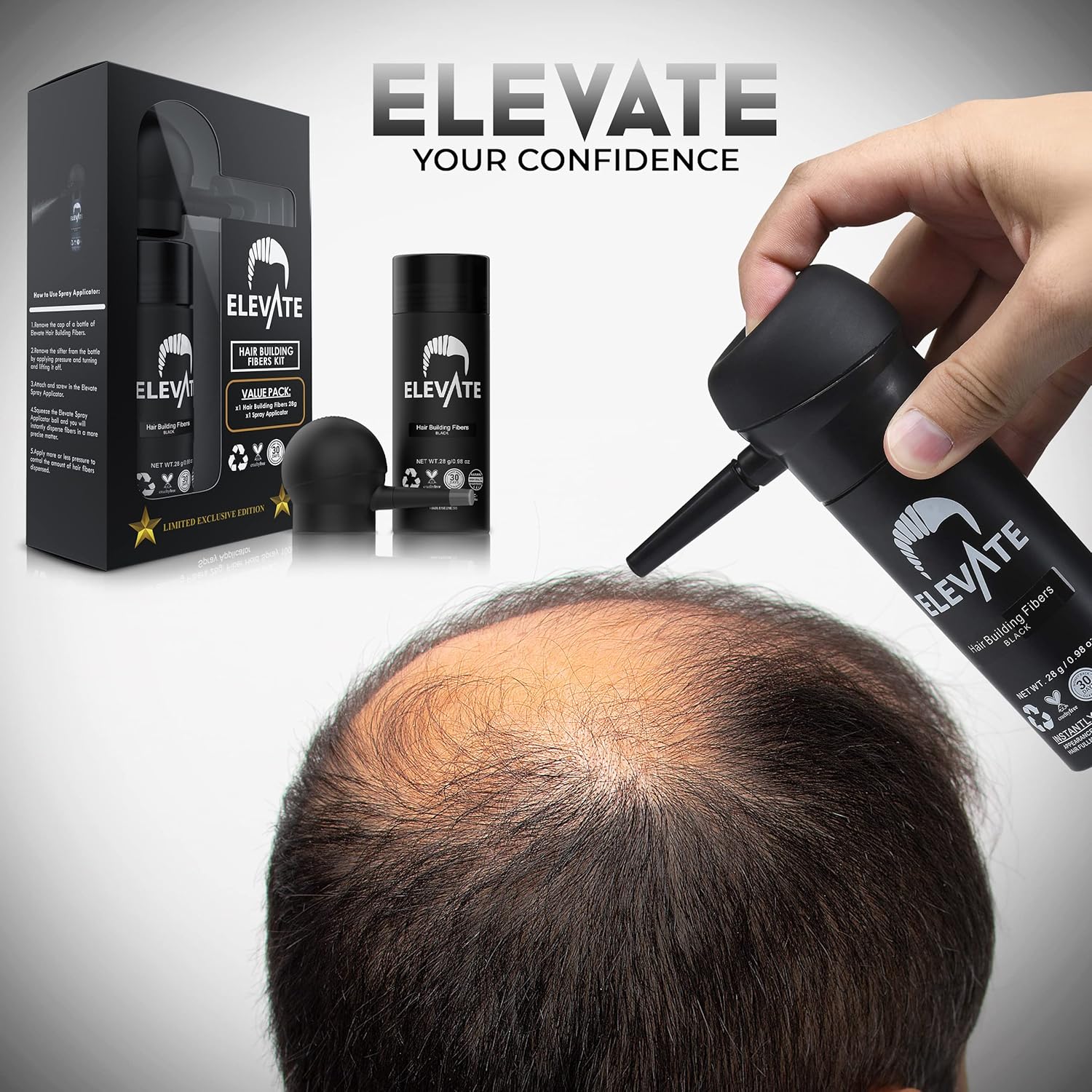 - INSTANTLY THICKER, FULLER-LOOKING HAIR IN SECONDS: Achieve the appearance of thicker, voluminous hair instantly with the ELEVATE Hair Perfecting 2-in-1 Kit. Our 100% natural keratin hair fibers bond seamlessly to your strands, while the spray applicator ensures even, controlled coverage for a natural, undetectable finish.