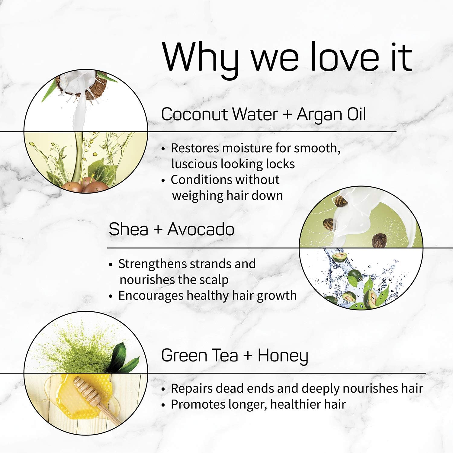 - GREEN TEA: This Restorative blend of green tea and honey helps soothe split ends while deeply nourishing to promote longer, healthier hair.