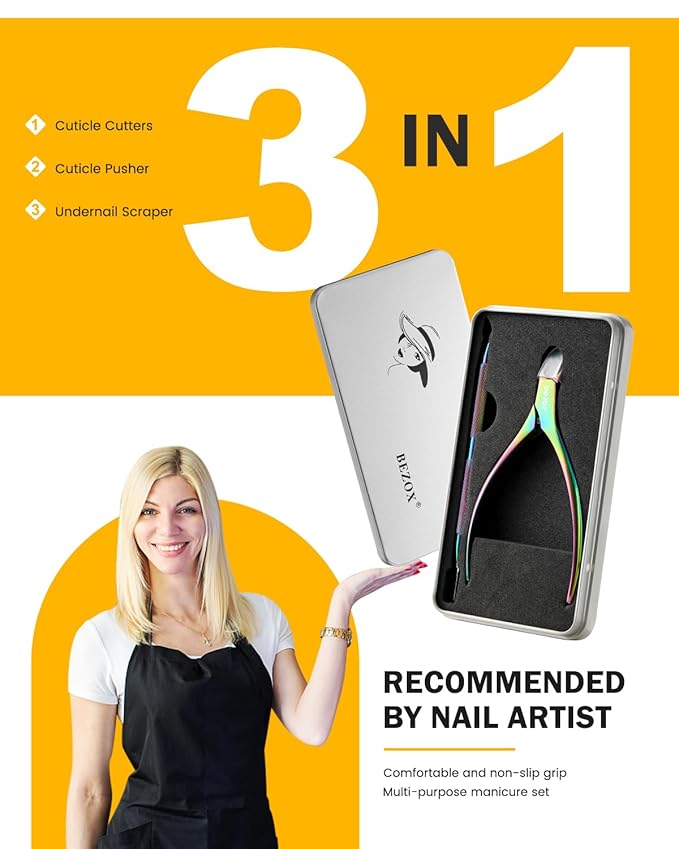 - COMFORTABEL CONTROL - Designed with your comfort in mind, the ergonomic handle of the BEZOX Cuticle Clippers and Pusher ensures a comfortable and non-slip grip. This feature is especially essential for those who love to pamper themselves with a DIY manicure at home. Even if you're a professional manicurist, you'll appreciate the ease of control this ergonomic design provides.