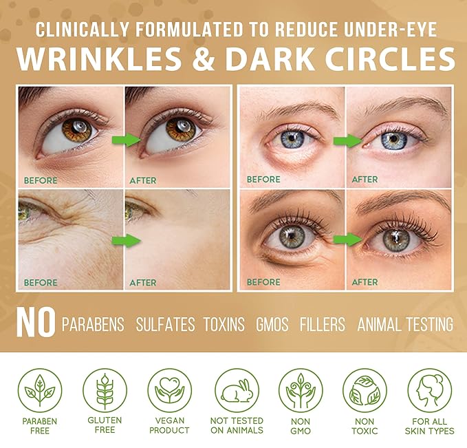 - ๐ฐ 100% All Natural & Vegan - Rest assured that this Vegan Friendly daily eye cream is Paraben-Free, Phthalate-Free, and Cruelty-Free (never tested on animals). It only contains selected premium ingredients that combat the root causes of eye puffiness, wrinkles, and discoloration. Compare against more expensive caffeine eye creams, coffee eye repair moisturizers, eye gels, and coffee eye repair lotions.