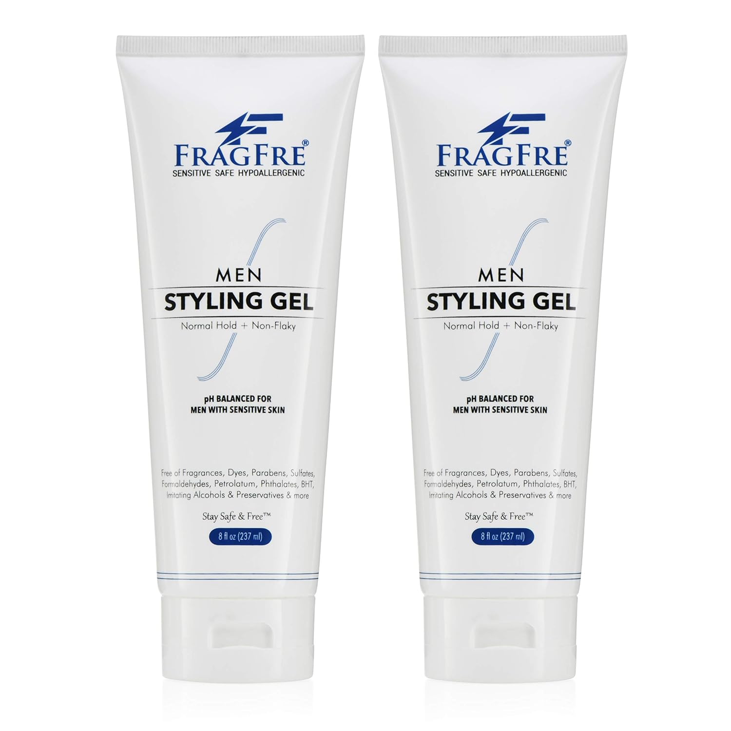Men Hair Styling Gel Fragrance Free 8 oz (2-Pack Gift Set) - pH Balanced for Men with Sensitive Skin - Not Too Firm or Light - Just Normal Hold for Normal Hair Styles - Hypoallergenic-No Bumps