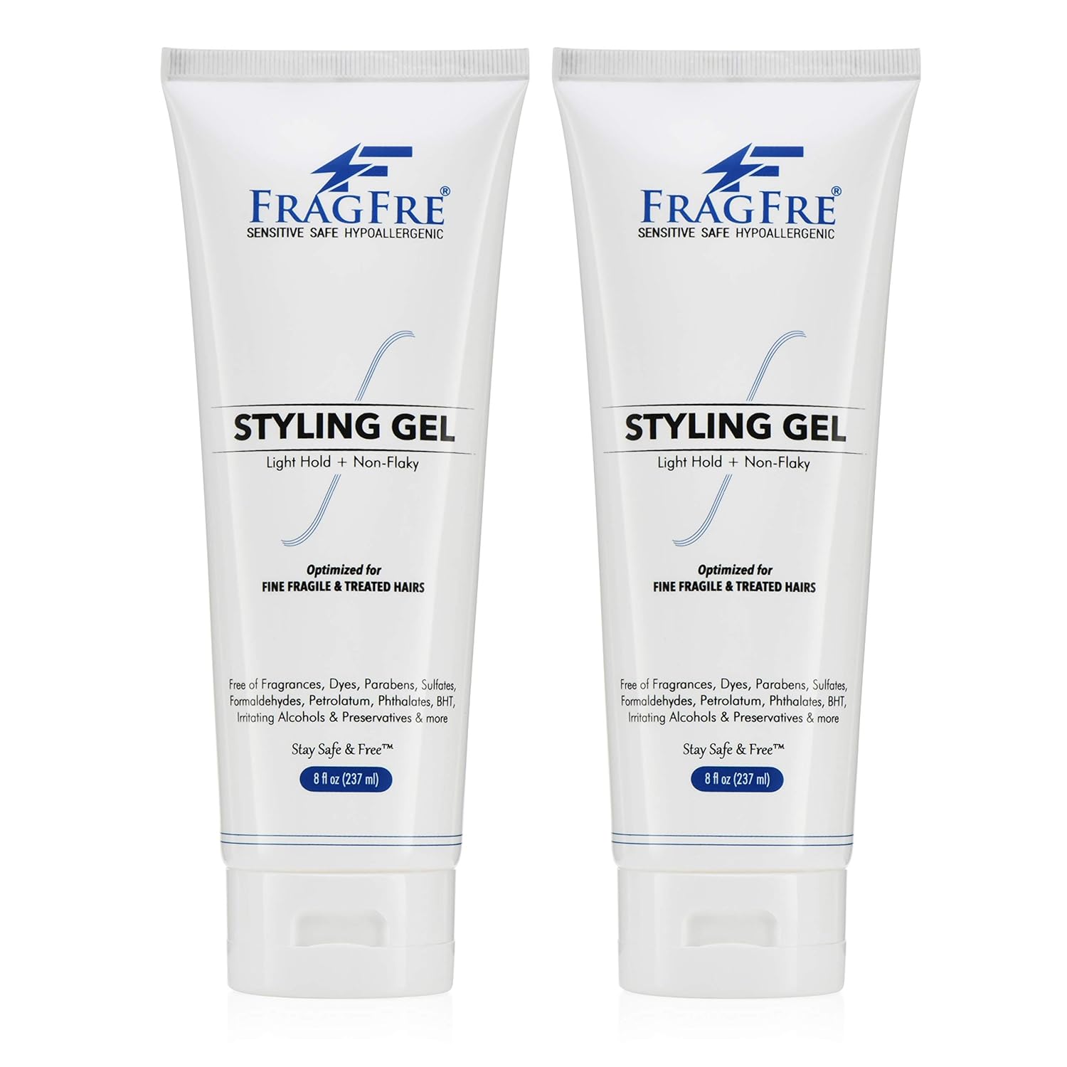 Light Hold Hair Gel Fragrance Free 8 oz (2-Pack Gift Set) - Lightweight Styling Gel for Fine Fragile and Weakened Hairs - Paraben Free Hypoallergenic Sensitive - Vegan Gluten Free Cruelty Free