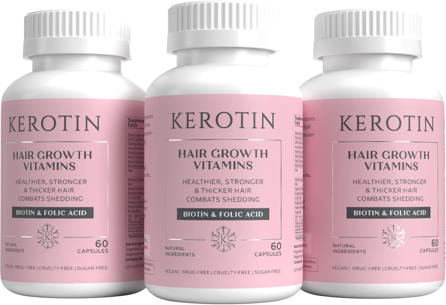 Kerotin Hair Growth Supplement for Longer, Stronger Hair - Enriched with Biotin, Folic Acid, Saw Palmetto to Promote Thick, Healthy Hair Growth (3 Months)