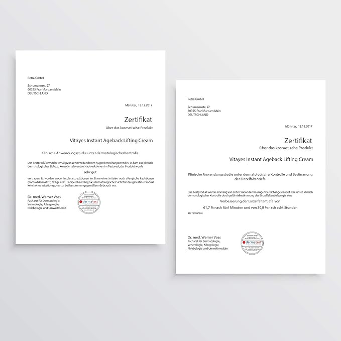 - ✅LONG-TERM TIGHTENING EFFECT WITHOUT WAITING | Vitayes powerful and unique protein-based active ingredient complex ensures immediate tightening and rejuvenation of the skin. Convince yourself now of our innovative anti-wrinkle lifting cream. The face cream / eye cream is suitable for men and women.