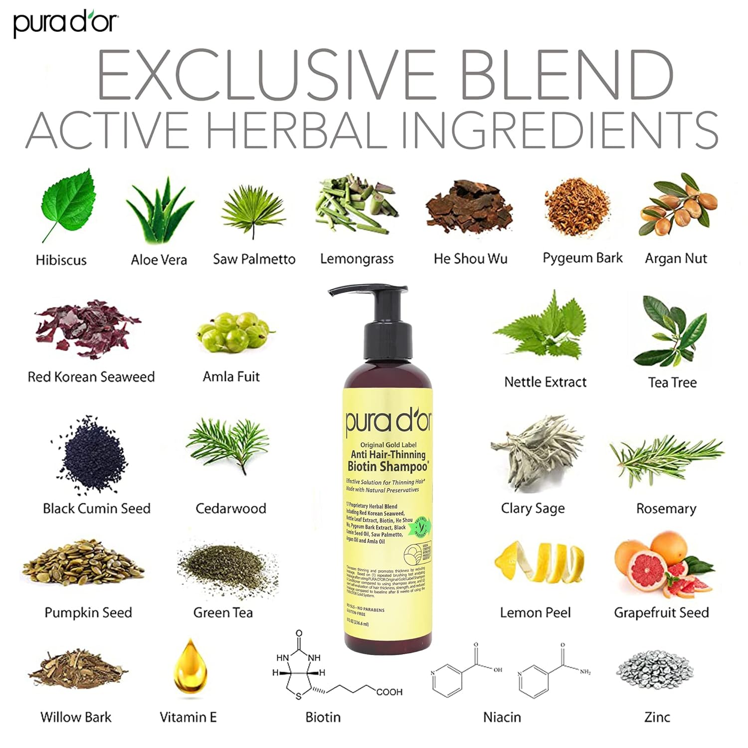 - SCIENCE plus NATURE. All PURA D’OR formulas combine science and nature to deliver transformative hair therapy. Select Natural Ingredients. No SLS (Sulfates). No Parabens. No Harmful Chemicals. Gluten Free. Hypo-Allergenic. Cruelty Free. Manufactured in the USA. Color Safe. Vegan
