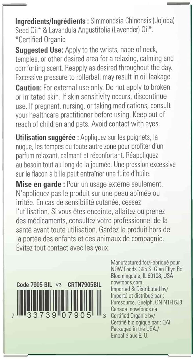 NOW Foods Essential Oils, Lavender Roll-On, Certified Organic, Calming Blend, Steam Distilled, Topical Aromatherapy, 10-mL