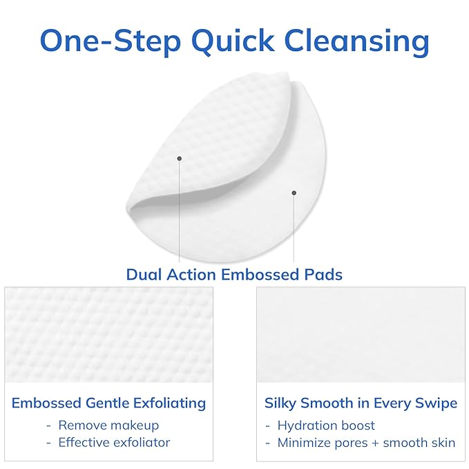- โก One-Step Quick Hydration & Cleansing: Achieve deep and refreshing cleansing, makeup removal, sebum control, and pore minimizing in just 30 seconds with our efficient one-step pads.