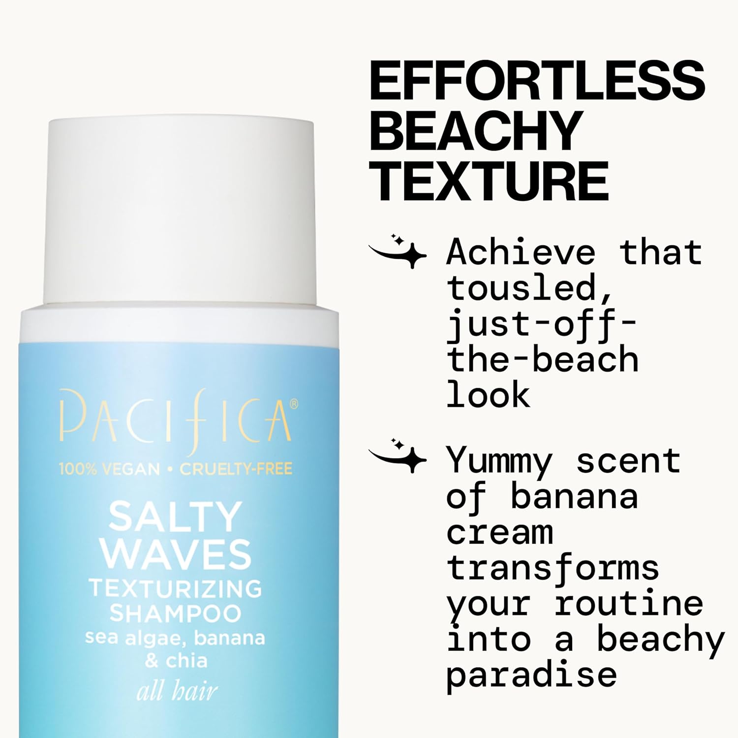 Pacifica Salty Waves Texturizing Shampoo - Beachy Textured, Messy Look, Hair Styles - Moisturizing Hair Care w/ Vitamin B & E - Banana Scent Clean Beauty Vegan & Cruelty-Free Dermatologist Tested