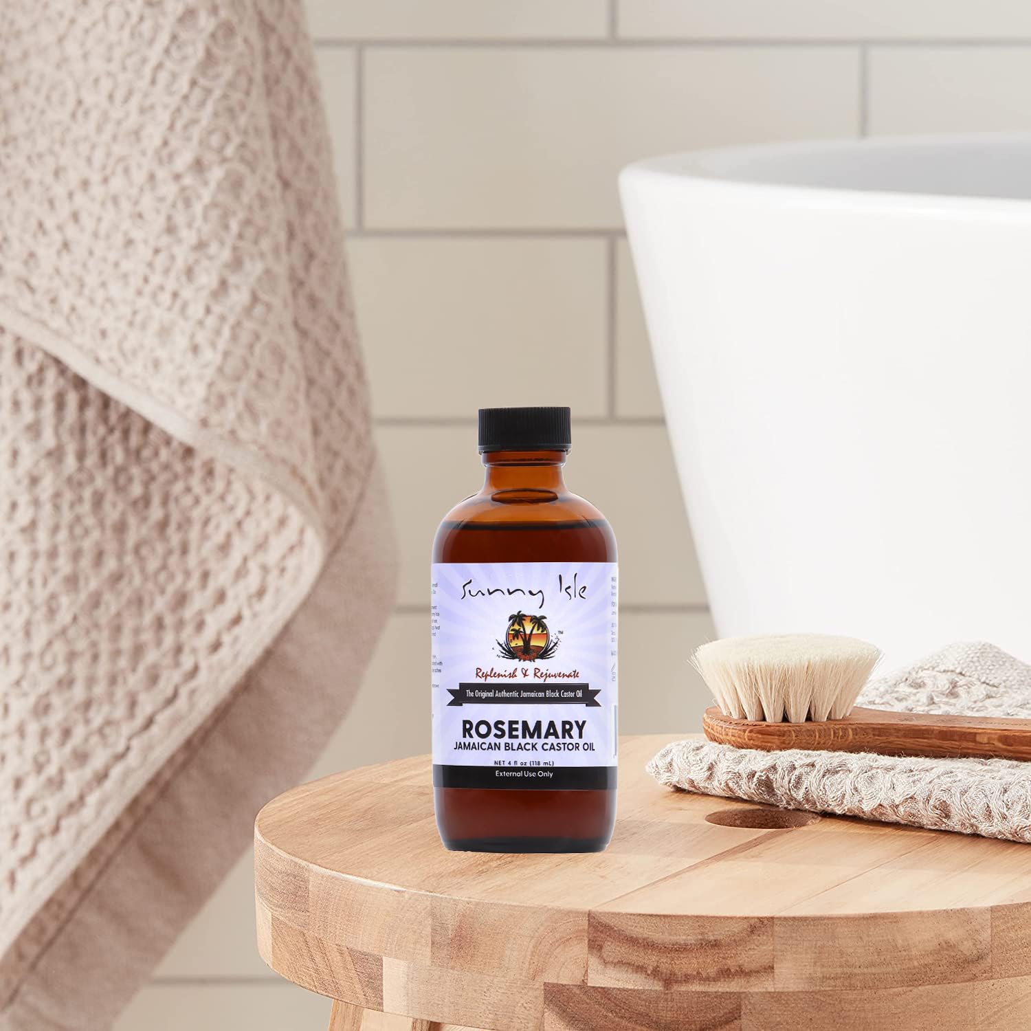 Sunny Isle Rosemary Jamaican Black Castor Oil 4oz | Hair Growth Treatment | For Scalp & Acne-Prone Skin | Hot Oil Application