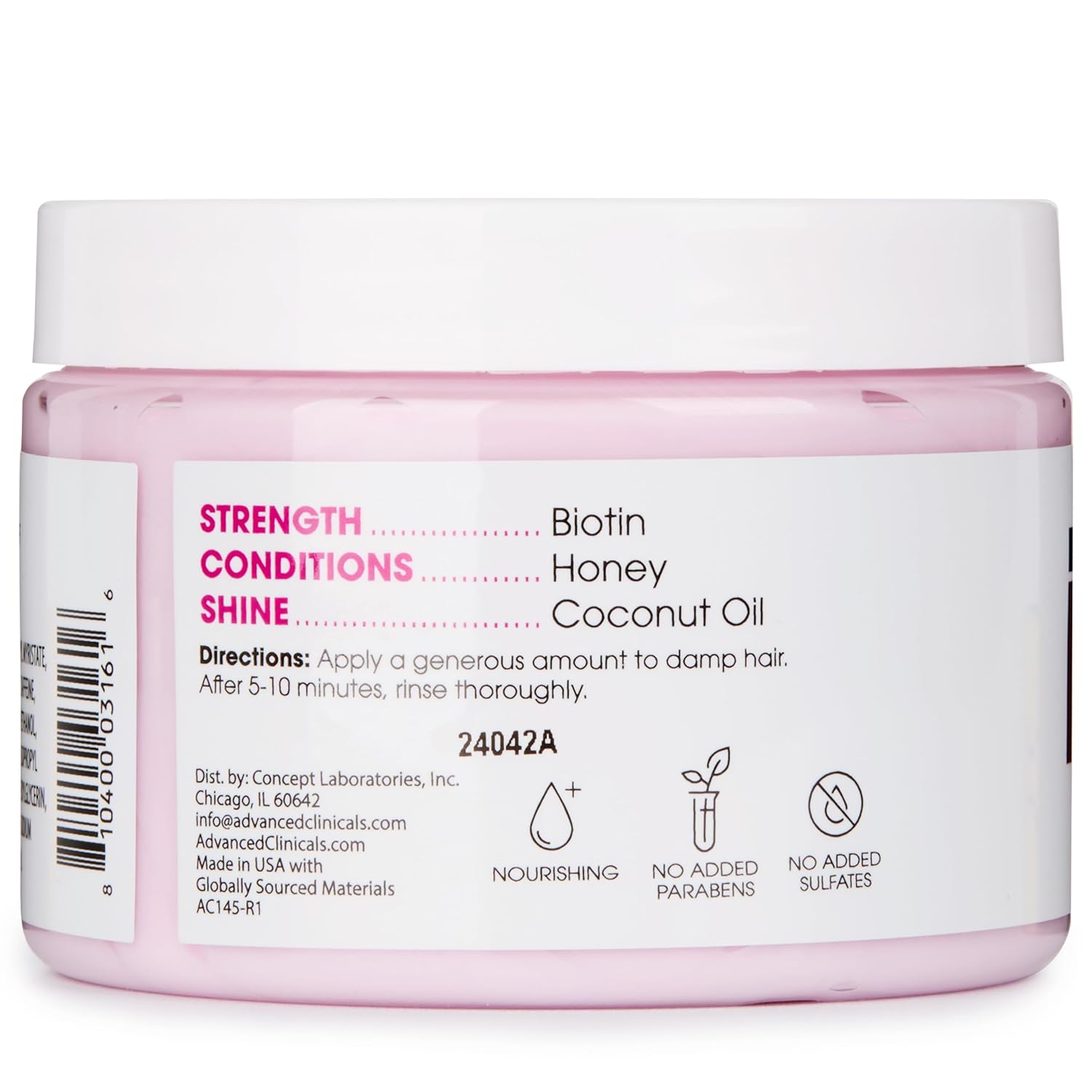 Advanced Clinicals Biotin Hair Treatment Anti-Breakage Repair Hair Mask. Strengthen Broken, Color-Treated Hair W/Repairing Deep Conditioner Manuka Honey & Caffeine To Restore Weak Hair, (Pack Of 2)