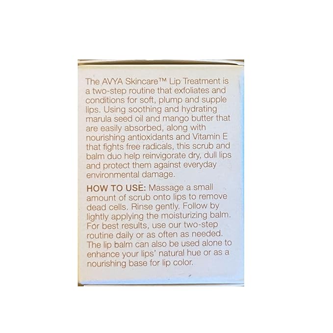Avya Skincare Two-In-One Lip Treatment/Sugar Scrub Exfoliates and Softens Lips/Balm with Marula and Mango Moisturizes and Nourishes / .07oz