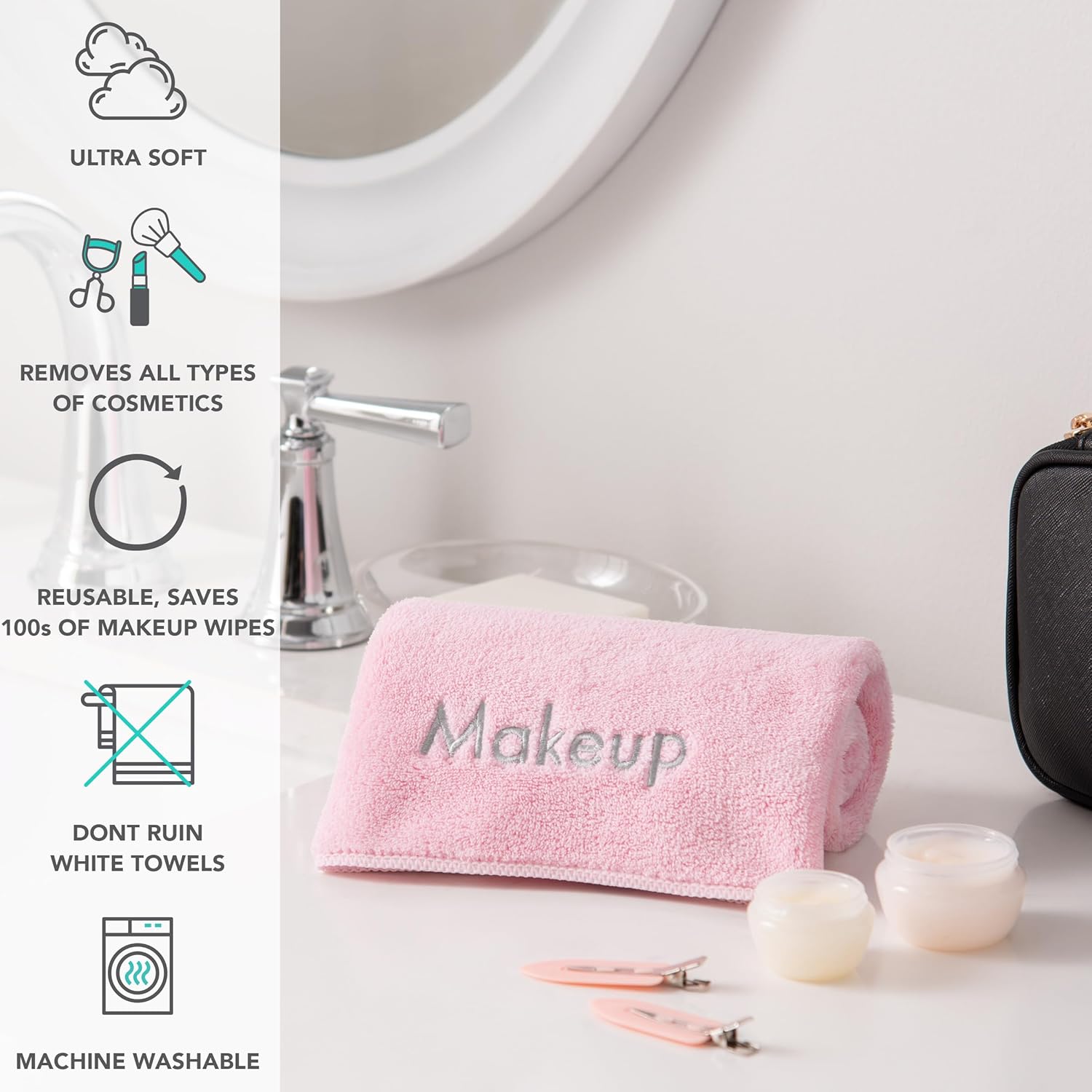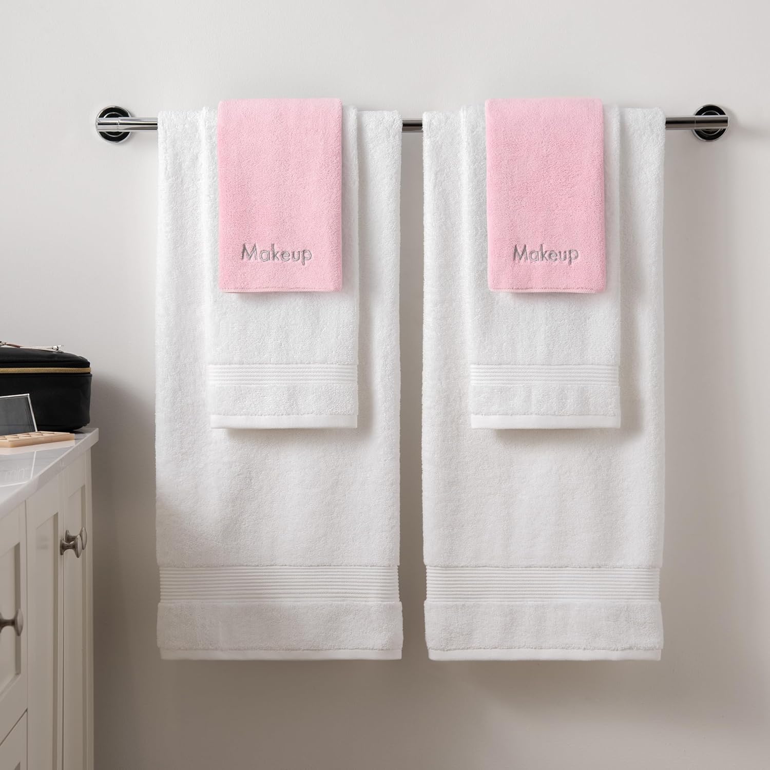 - DON'T RUIN YOUR WHITE TOWELS: Do not ruin your white towels with makeup stains - use our microfiber makeup eraser cloth set that will won't look shabby or dirty. The charming "Makeup" embroidery sets this makeup remover cloth apart from other bathroom linens.