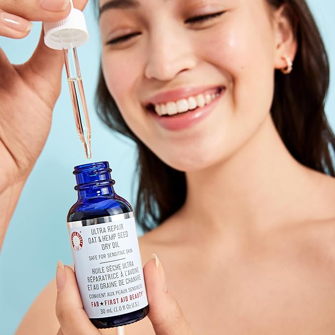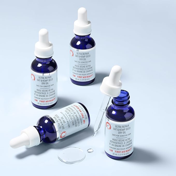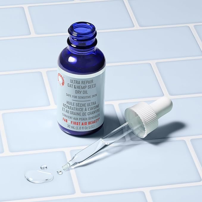 First Aid Beauty Ultra Repair Oat & Hemp Seed Oil – Hydrating, Non-Greasy Facial Oil with Arnica & Colloidal Oatmeal for Redness Relief – Calms Dry, Distressed Skin – Fragrance Free, 1 oz