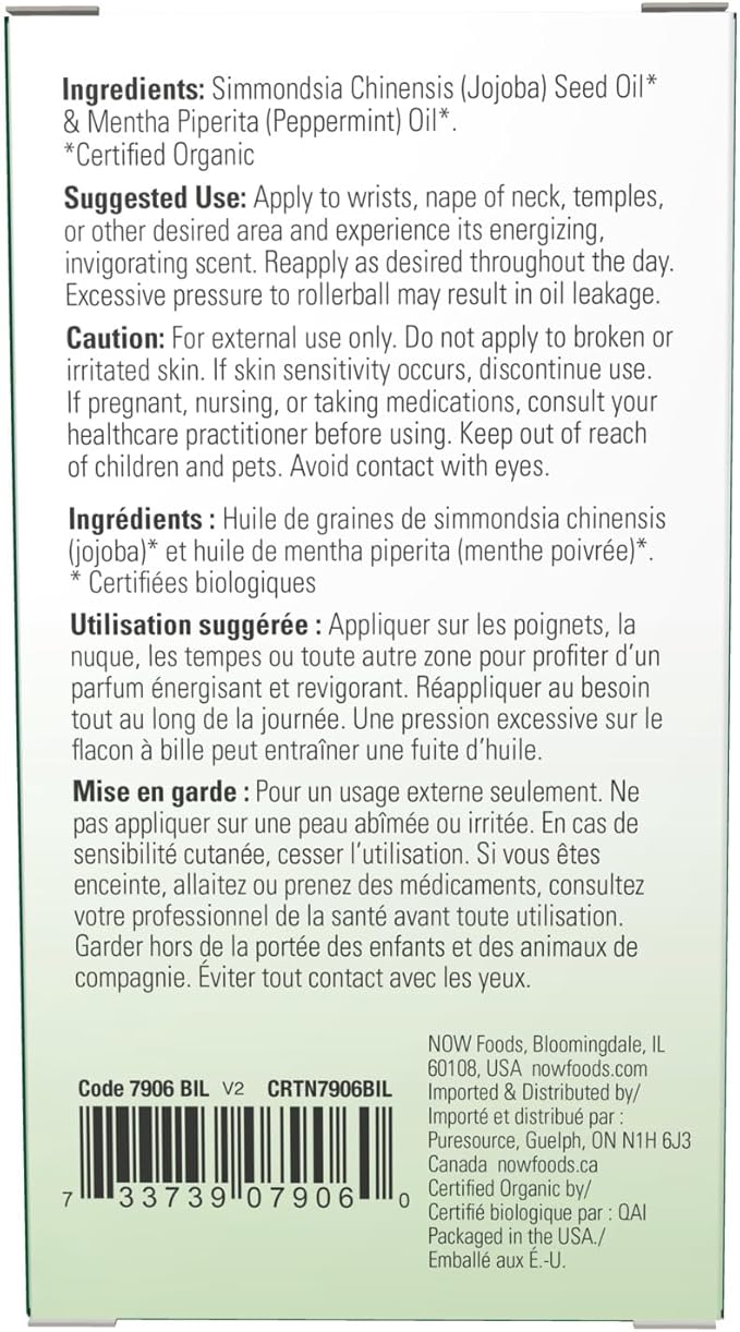 NOW Foods Essential Oils, Peppermint Roll-On, Certified Organic, Energizing Blend, Steam Distilled, Topical Aromatherapy, 10-mL