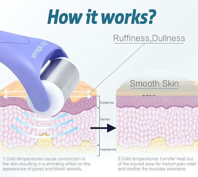 Ice Roller, ESARORA Ice Roller for Face & Eye, Puffiness, Migraine, Pain Relief and Minor Injury, Skin Care Products with 2 Roller (1 Plastic Roller & 1 Stainless Steel Roller)
