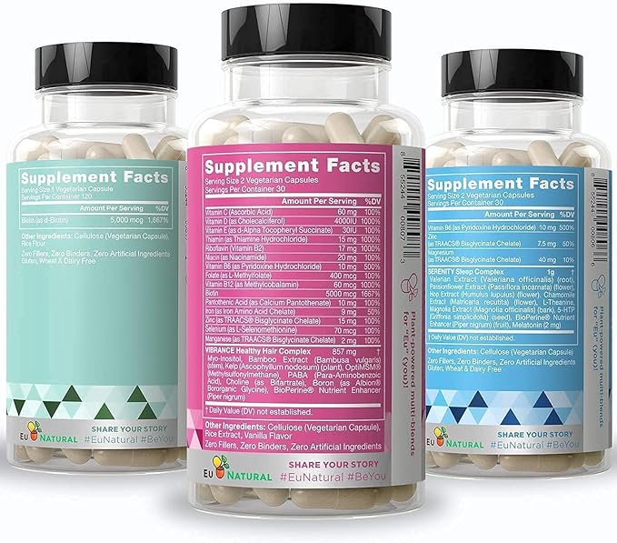 Eu Natural Beauty Bundle - Vibrance Bundle with Biotin & Serenity for Healthier Hair Growth, Stronger Nails, Glowing Skin