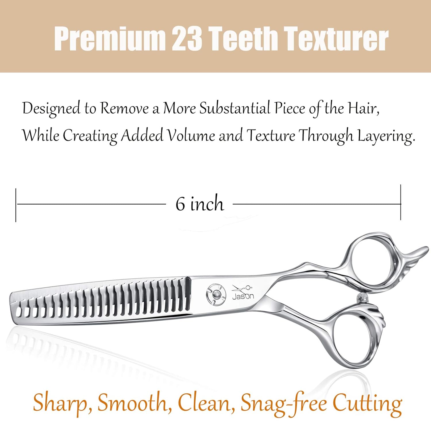 JASON 6" Texturizing Hair Scissors, 23 Teeth Hair Texture Shears Professional Blending Hair Thinning Scissor for Barber, Hairdresser, Stylist, Women and Men, Japanese 440C Stainless Steel