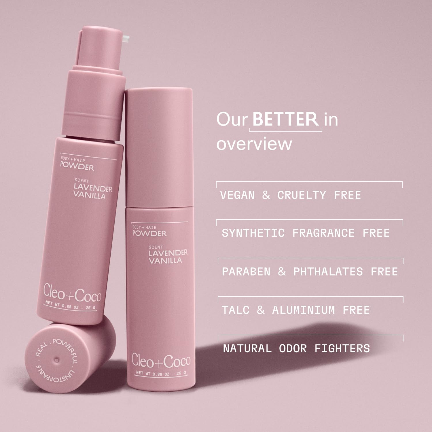 Cleo + Coco. Deodorant Powder for Body and Hair, Lavender Vanilla (0.88 oz), 2-in-1 Deo Powder & Dry Shampoo for Women & Men, Aluminum Free Deodorant, Talc-Free, Anti Chafe Protector, Travel-Size