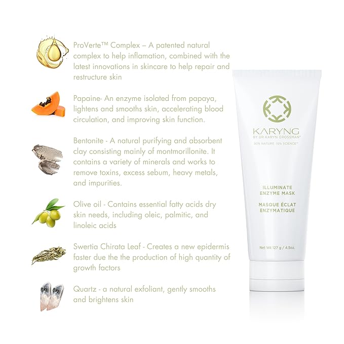 - SKIN ILLUMINATING from Papain, an organic exfoliating enzyme derived from papaya and quartz. Combined with ourPro-Verte anti aging complex for visible results of brighter skin after just one use.