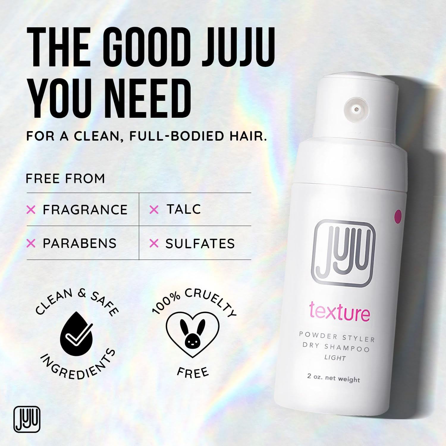 - TALC-FREE AND CHEMICAL FREE DRY SHAMPOO NATURAL FORMULA: Our talc free dry shampoo and non-aerosol dry shampoo is free from parabens, sulfates, and artificial fragrances, making it gentle on sensitive scalps. The dry shampoo non aerosol for women by Juju helps refresh hair while maintaining scalp health. Enjoy oil-free, voluminous hair with our healthy dry shampoo, designed for a clean beauty routine without harsh ingredients or unwanted buildup.