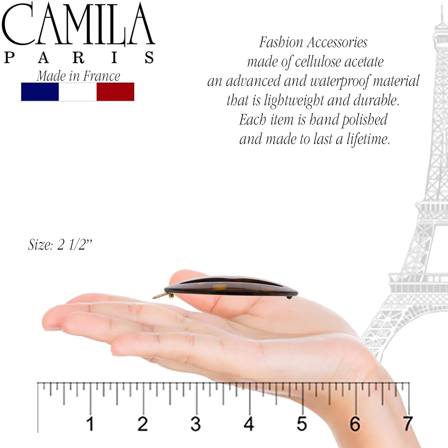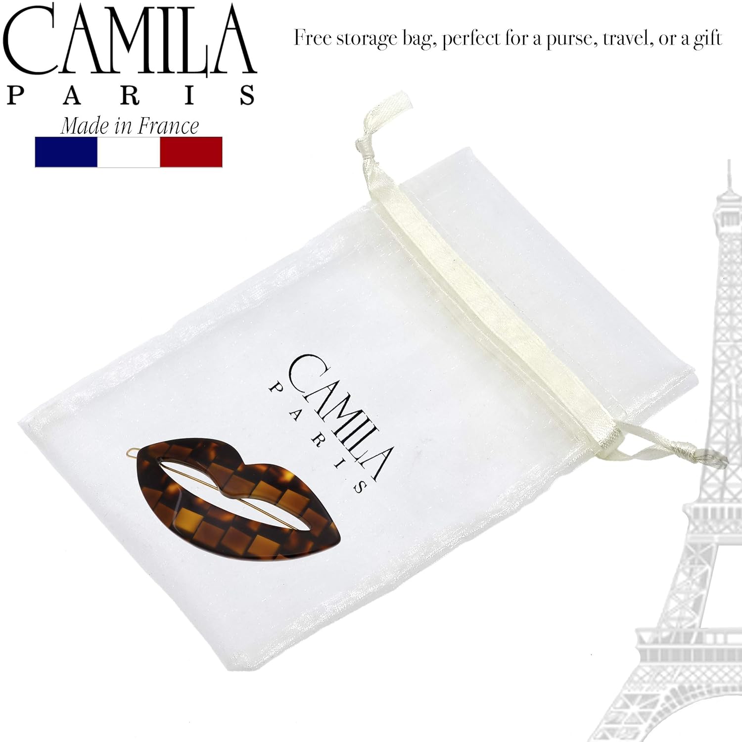 Camila Paris CP2971 French Hair Barrette Clip for Girls, Small Handmade Kiss Brown, Strong Hold Grip Hair Clips for Women, No Slip and Durable Styling Girls Hair Accessories, Made in France